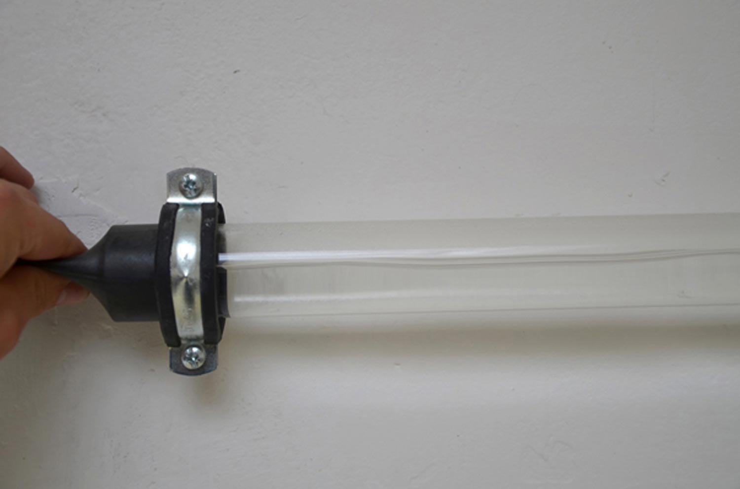 In a studio at the Brno Faculty Of Fine Arts , the installation "Surface" was created from thin glass tubes that are normally used to transport liquids such as milk. In the installation, the tubes are on the walls and filled with water that can only be filled in at one point. The water then spreads throughout the room. However, the spectators only experience the water in a calm, motionless state. Nevertheless, the impression is given that the installation has a practical use, so that some guests did not regard it as a work of art at all.